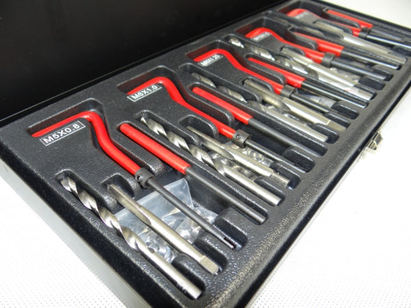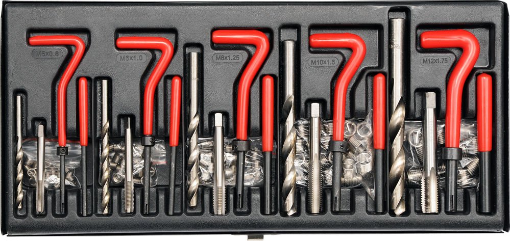 ⭕ Za obnovo in popravilo vrtalnega navoja v 5 velikostih in vložkov v 5 velikostih📦 Paket je sestavljen izM5 x 0,8 x 6,7 mmM6 x 1,0 x 8,0 mmM8 x 1,25 x 10,8 mmM10 x 1,5 x 13,5 mmM12 x 1,75 x 16,3 mm💼 Vse zapakirano v kompaktno transportno kovinsko škatlo